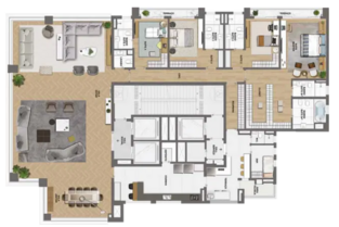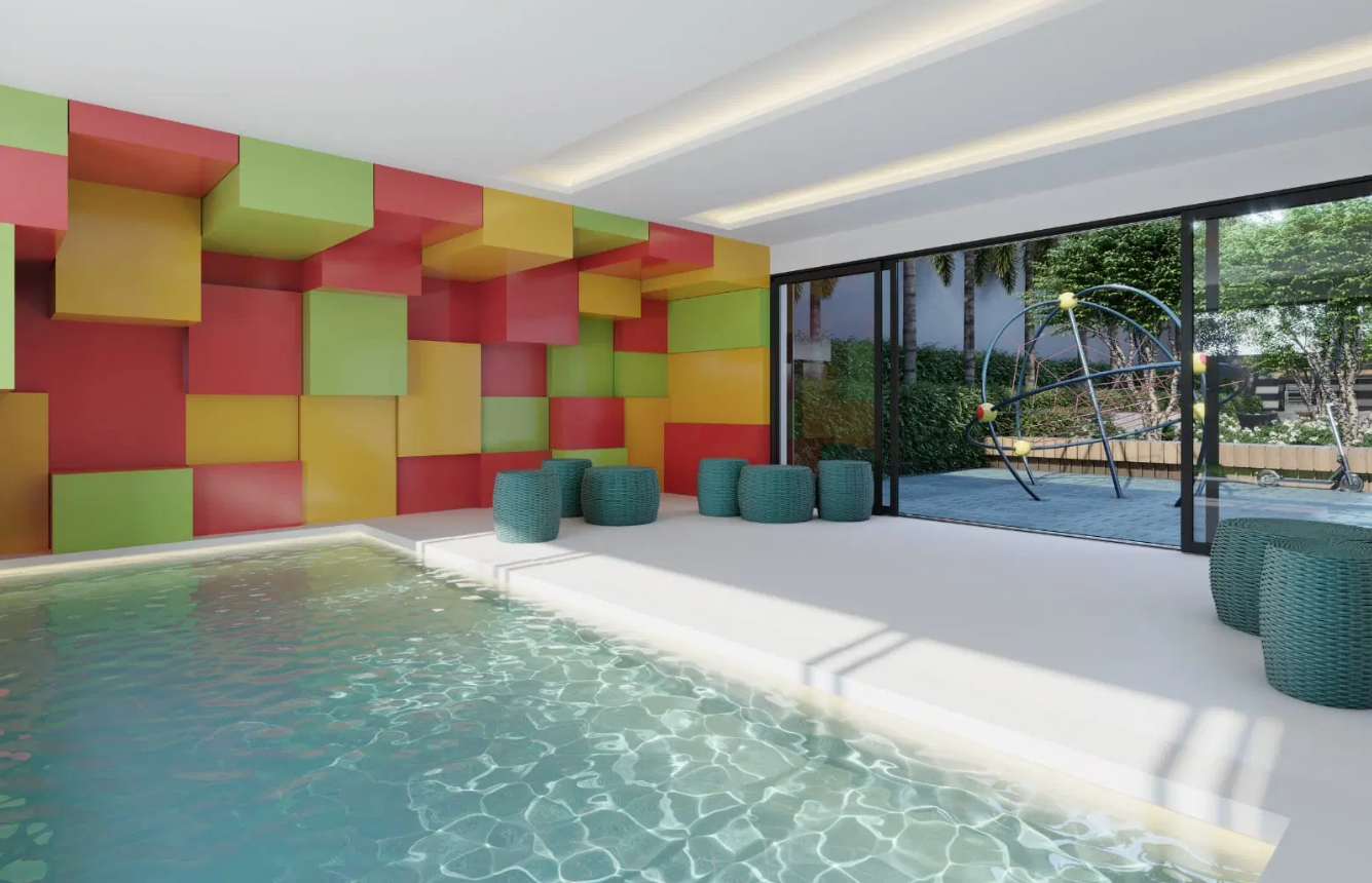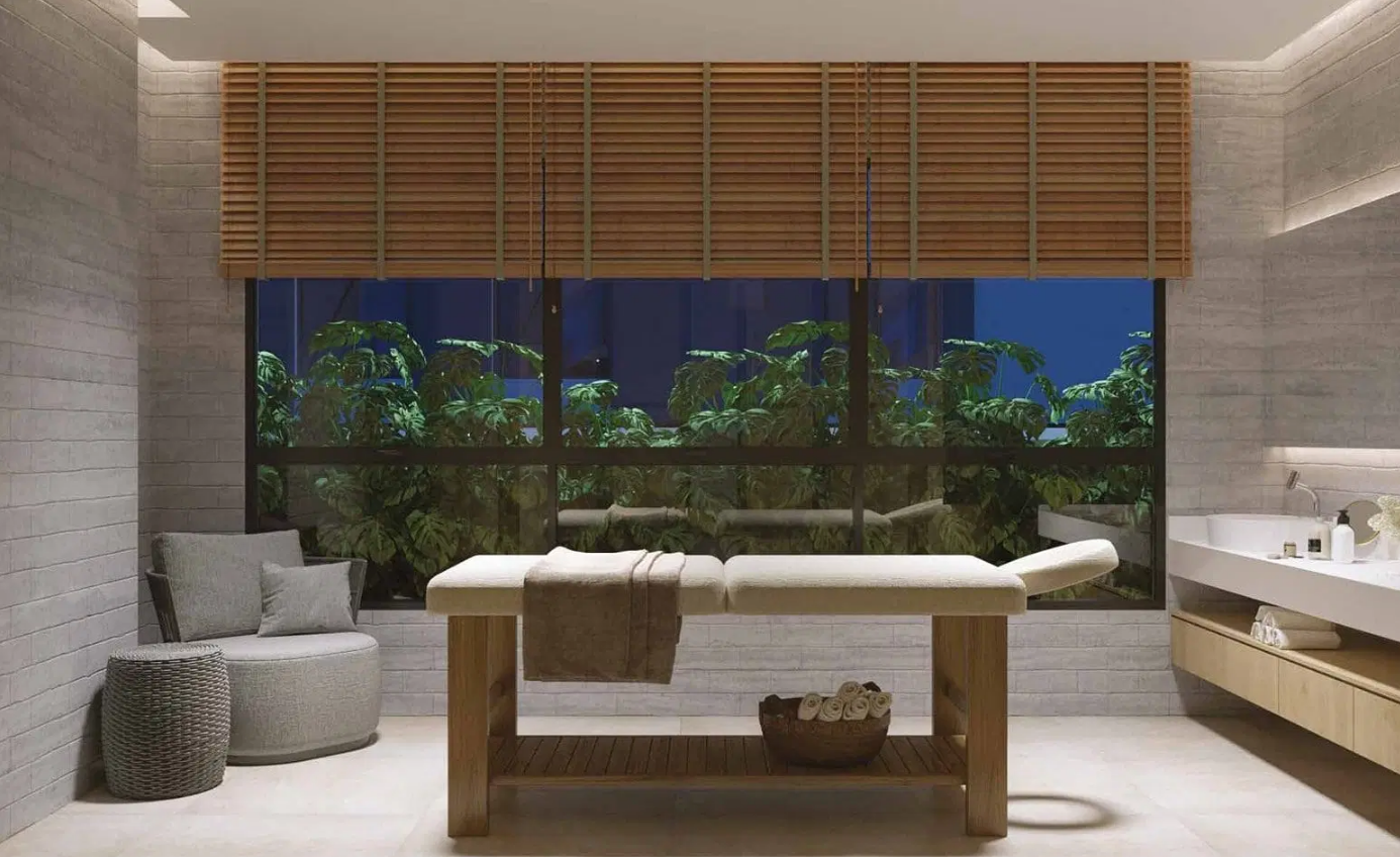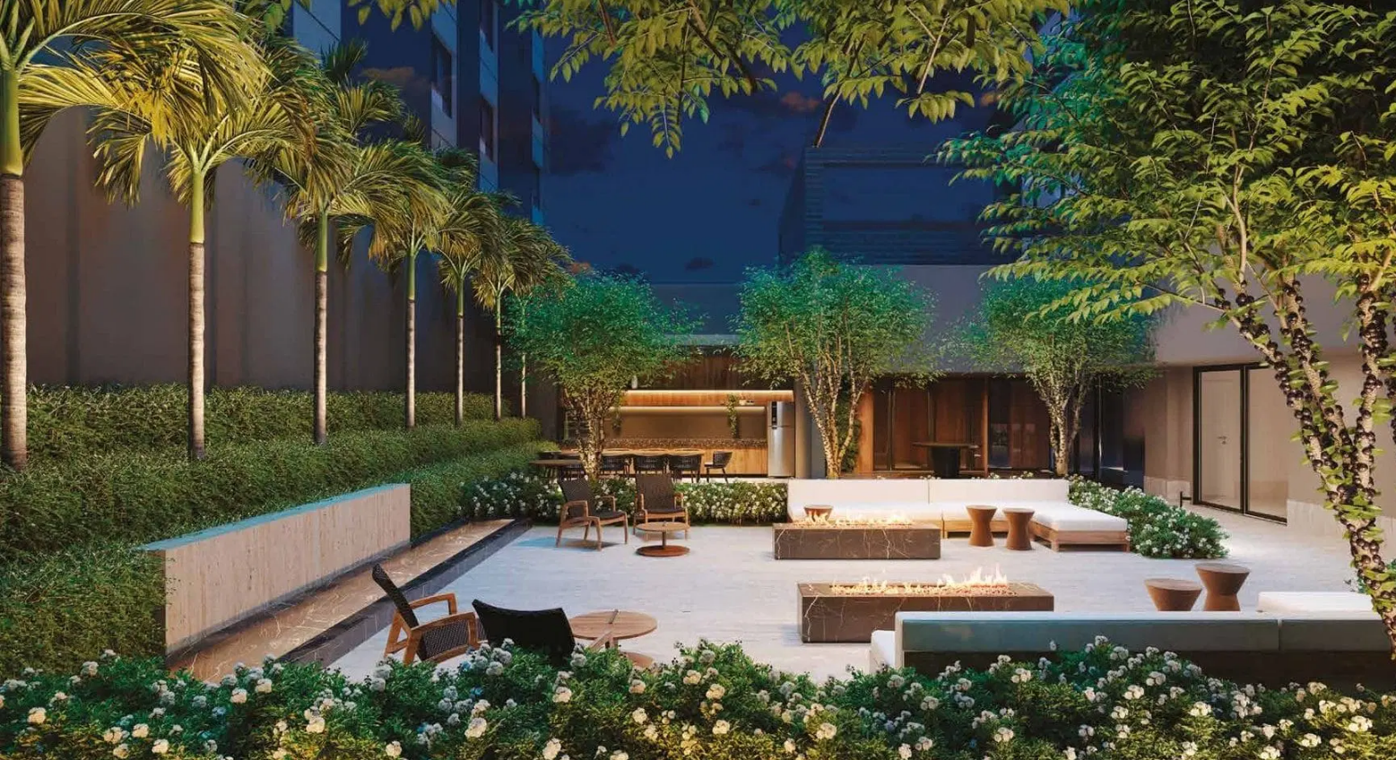 As opções de tipologia incluem apartamentos de 375 m² com quatro suítes e cinco vagas de garagem, gardens com terraço descoberto de mais de 170 m², e coberturas duplex de 688 m² com piscina privativa, terraço panorâmico e elevador interno. O condomínio oferece infraestrutura completa de lazer e bem-estar, com piscina, academia assinada pela Cia Athletica, spa, sauna, salão de festas, churrasqueira, playground e brinquedoteca, além de portaria 24 horas e acessibilidade garantida.